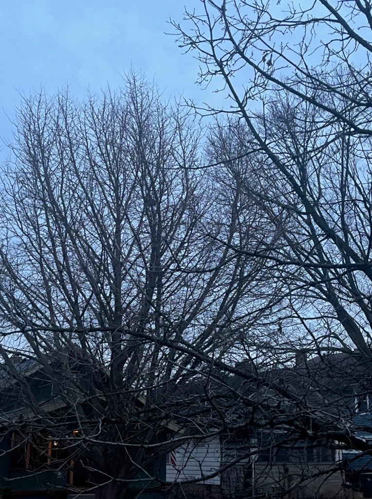 The leaves on my neighbors’ trees across the street were long gone of course and the branches bare against a grey pre-dawn. It was cloudy so it wouldn’t be a dramatic sunrise. But the sun was coming back to life regardless and I was going to be there. I sat for a few more minutes. No cars came past, and none of the neighborhood dogs were out barking. I was alone on my porch, with my coffee and thoughts and ready to leaved ’25 behind.